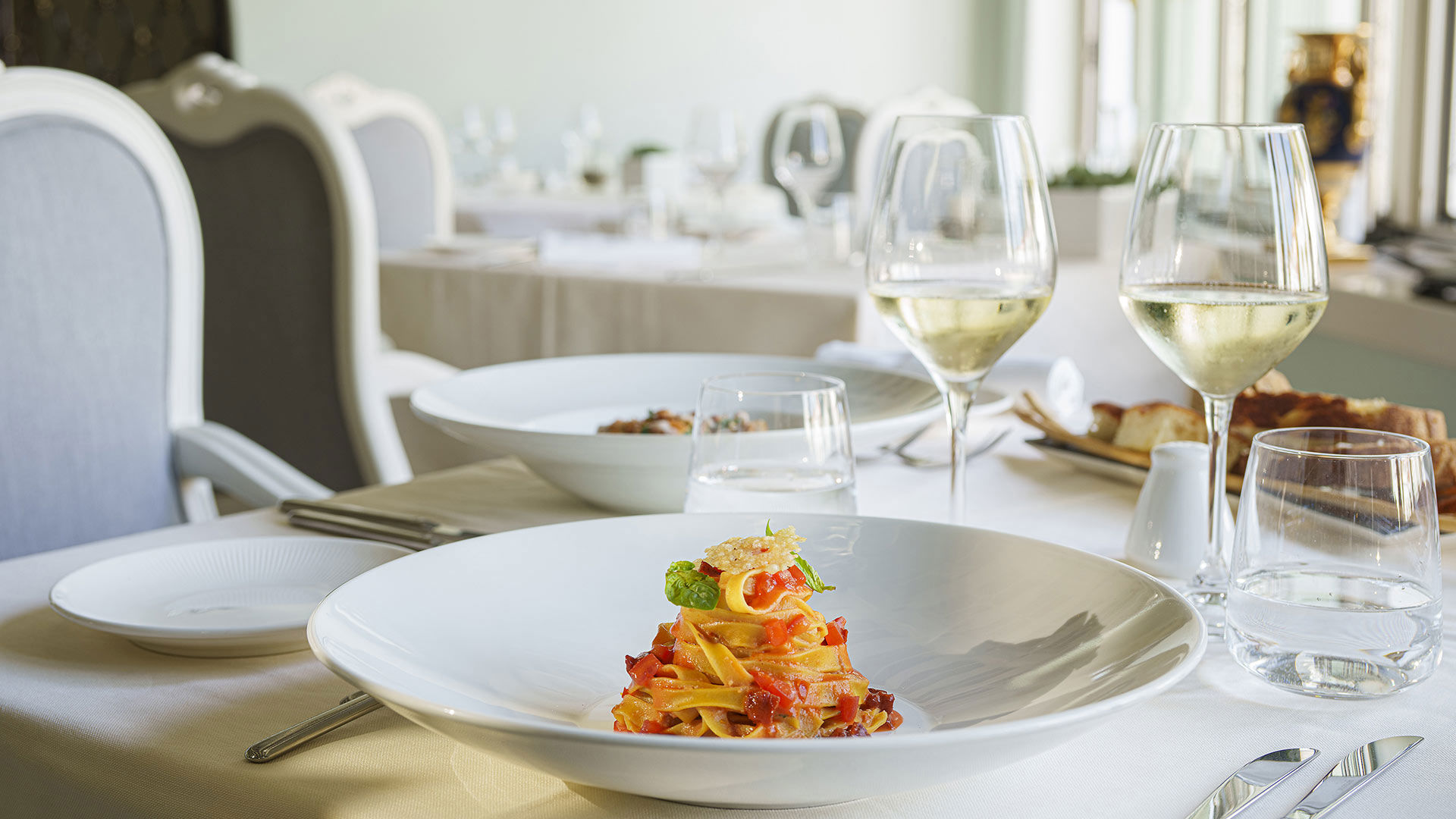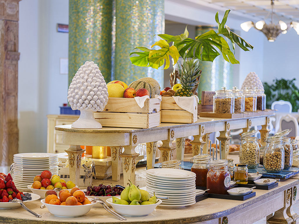 Sul rooftop a pochi passi dalla piscina termale esterna, il ristorante Bouganville propone un menù tipicamente fresco, perfetto per un light lunch in terrazza oppure uno snack a bordo piscina.